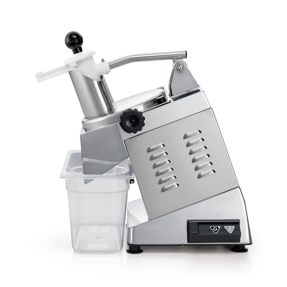 Διαθέτει ισχυρό αεριζόμενο κινητήρα περίπου 0,5–0,7 kW (≈515W), που εξασφαλίζει συνεχή λειτουργία χωρίς υπερθέρμανση, ενώ οι στροφές λειτουργίας (~300 rpm) προσφέρουν ομοιόμορφο αποτέλεσμα κοπής. Το σώμα από ανοξείδωτο ατσάλι και ειδικά κράματα αλουμινίου εγγυάται αντοχή, υγιεινή και συμμόρφωση με τα ευρωπαϊκά πρότυπα. Παράλληλα, η δυνατότητα επεξεργασίας έως και 200 kg/h το καθιστά ιδανικό για επαγγελματική χρήση υψηλής έντασης.