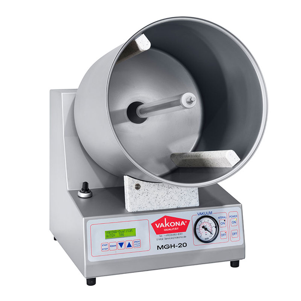 Η Vakona MGH 20 STL είναι μια επαγγελματική βαρέλα μάλαξης κρέατος υψηλής ποιότητας, για εστιατόρια, κρεοπωλεία, μονάδες επεξεργασίας κρεάτων, εργαστήρια τροφίμων και επαγγελματικές κουζίνες. Σχεδιασμένη για την τρυφεροποίηση, τη μάλαξη και την ομοιόμορφη ανάμειξη προϊόντων όπως κρέας, πουλερικά και ψάρια, εξασφαλίζει κορυφαία γεύση, υφή και εμφάνιση.